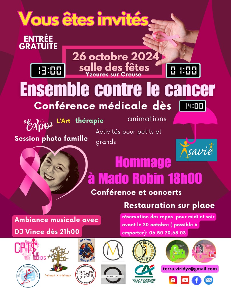 Rejoignez-nous à la salle des fêtes d’Yzeures-sur-Creuse le 26 octobre pour un événement caritatif en hommage à Mado Robin et en soutien à la lutte contre le cancer. À partir de 14h, une conférence médicale abordera les progrès et enjeux de cette cause, suivie d’animations et d’activités pour tous.