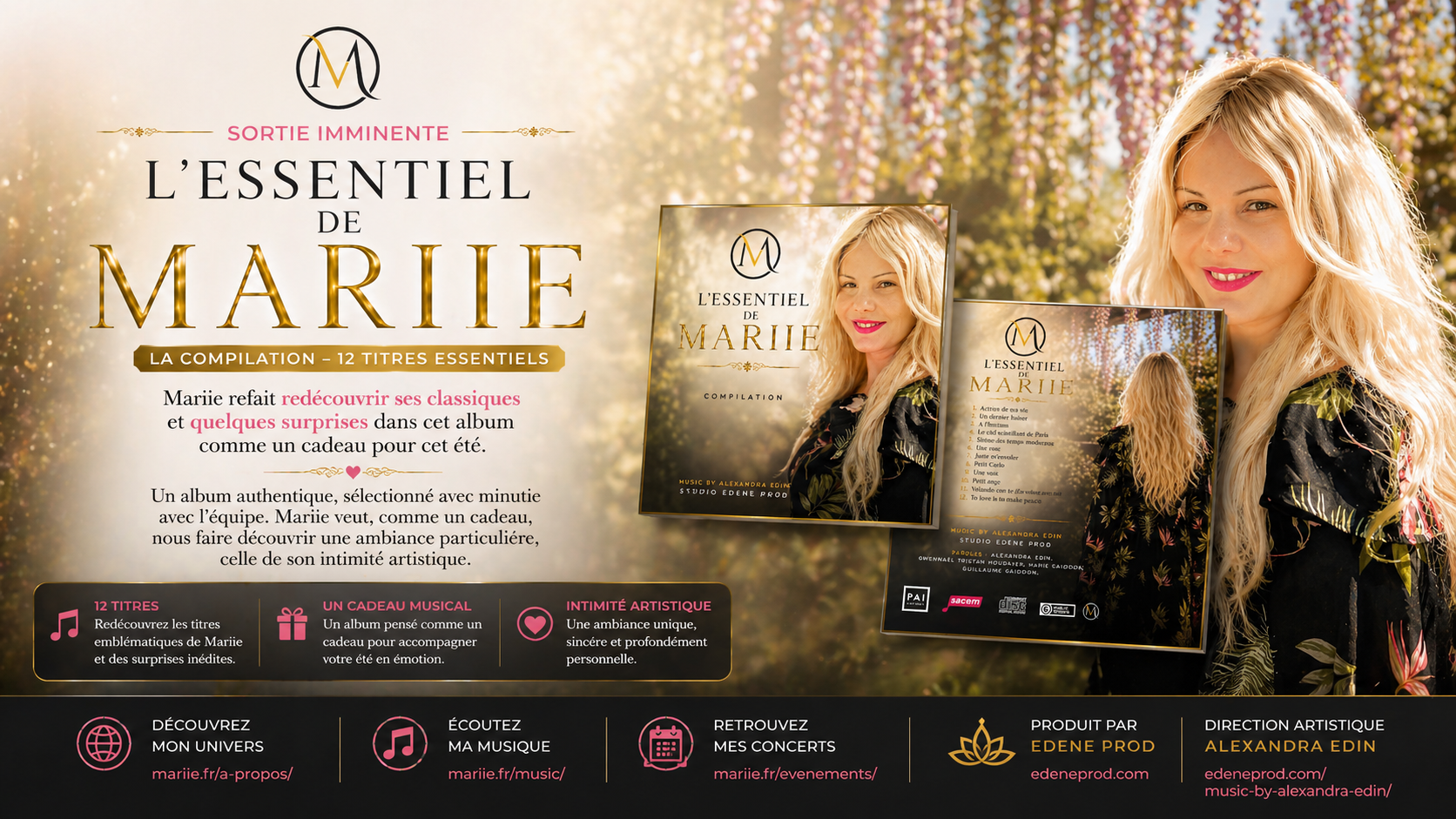 Plus qu’une simple compilation, « L’Essentiel de Mariie » a été pensé comme un cadeau destiné à son public. L’artiste souhaite offrir une redécouverte de ses titres les plus marquants, accompagnés de quelques surprises qui viendront enrichir l’écoute.