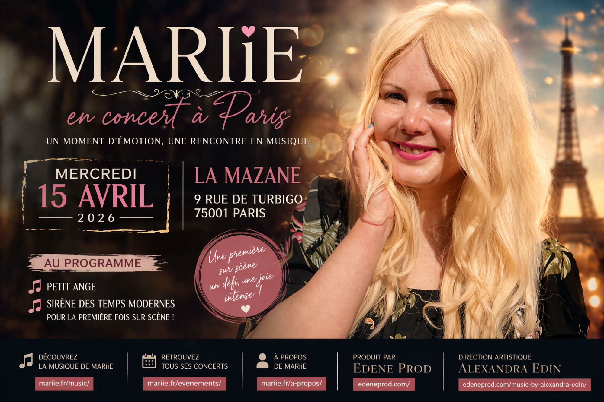 Ce concert marque une étape importante dans le parcours de l’artiste. Habituée à construire un univers musical sensible et profondément incarné, Mariie franchit ici un cap symbolique : celui de la confrontation directe avec le public, là où la musique prend toute sa dimension vivante.