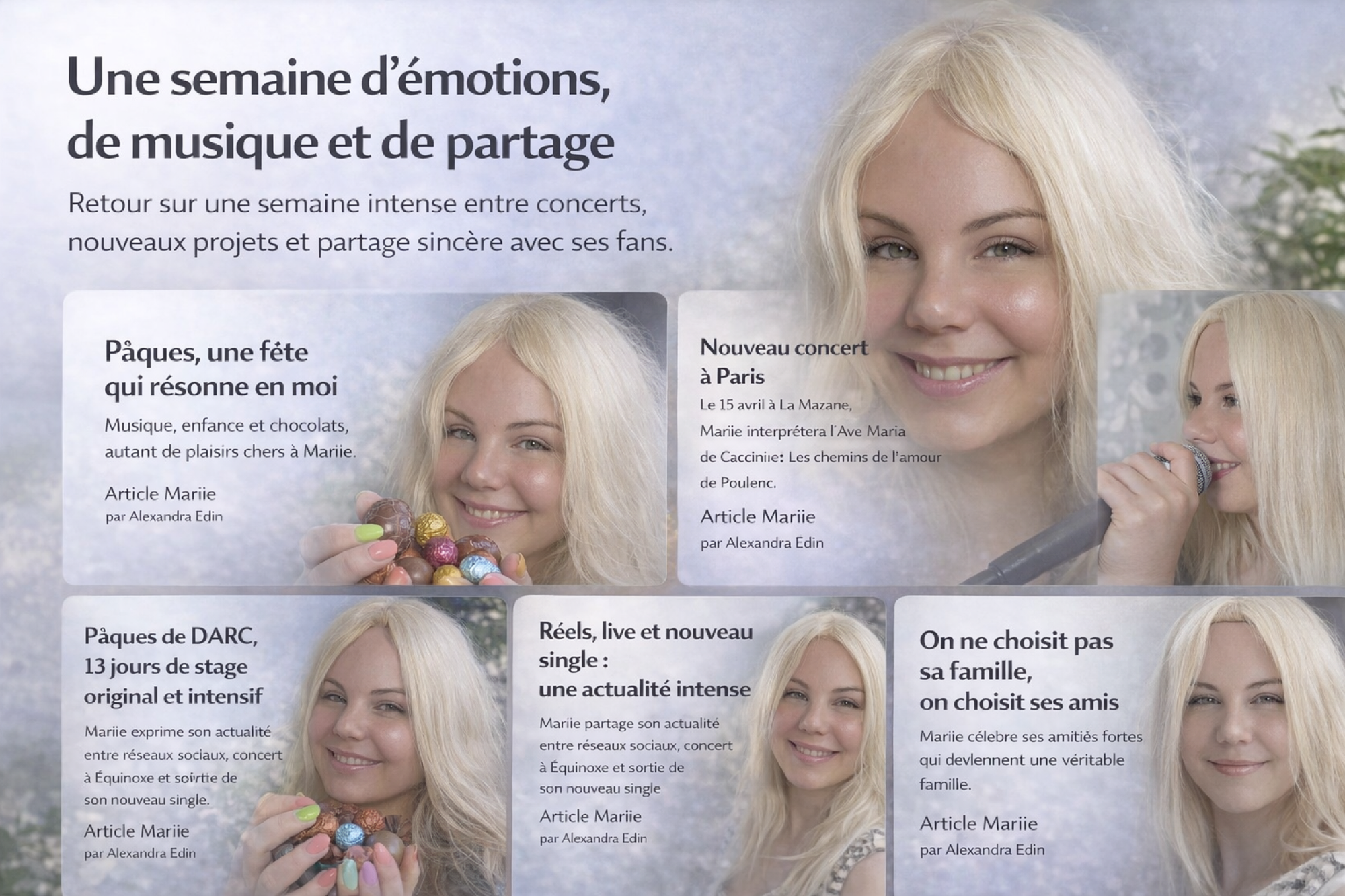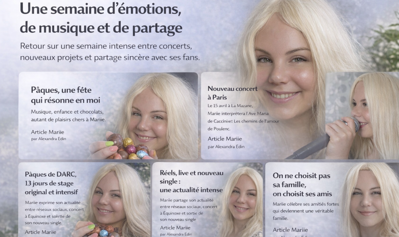 Cette semaine a été particulièrement riche pour Mariie. À travers ses mots, ses projets et ses émotions, l’artiste a partagé bien plus que de simples actualités : une véritable immersion dans son univers.