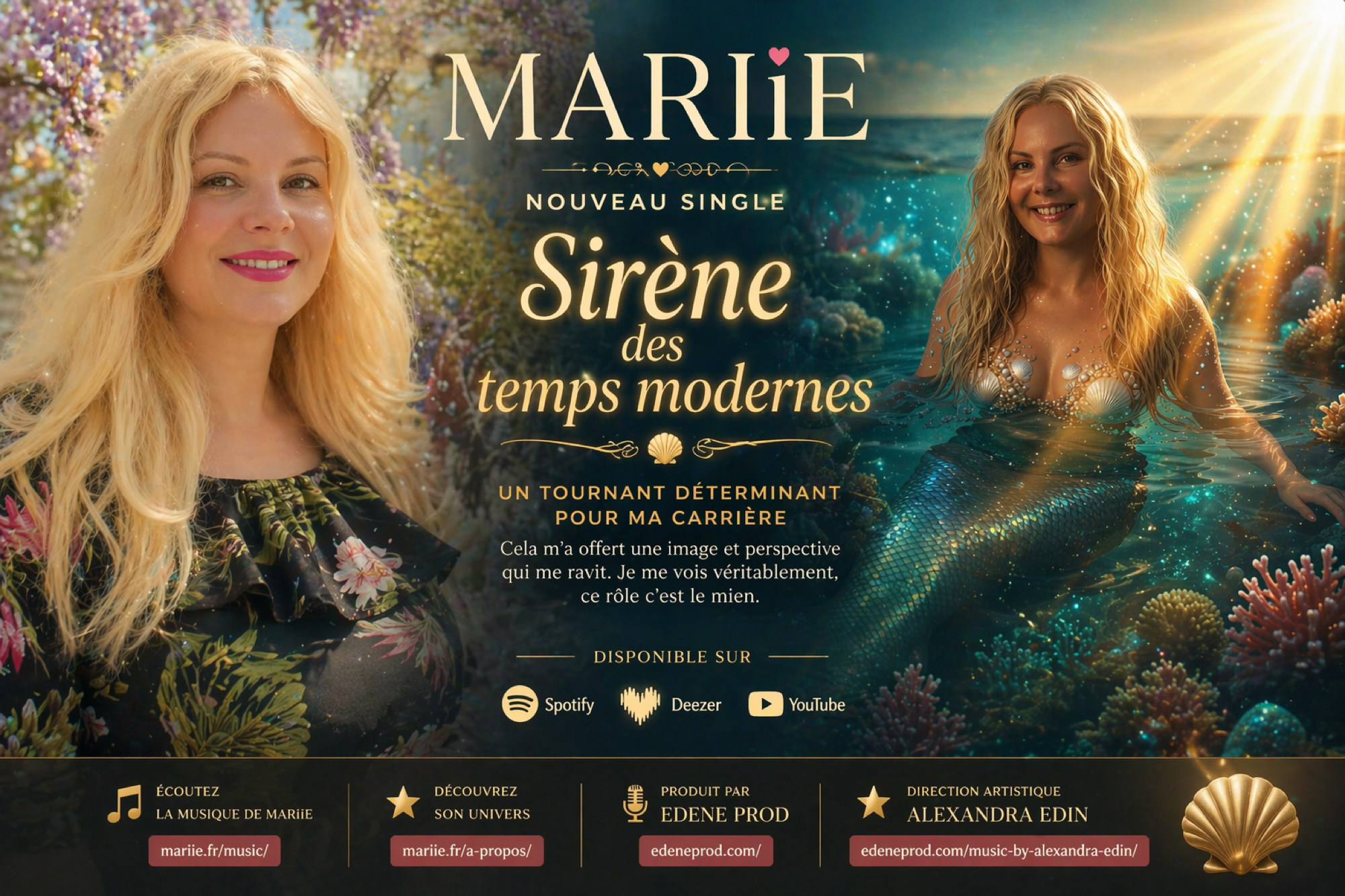 À travers cette chanson, l’artiste ne se contente plus d’interpréter : elle incarne. « Sirène des temps modernes » devient le reflet d’une identité artistique qui s’impose avec évidence. Une vision dans laquelle Mariie se reconnaît pleinement, comme une révélation personnelle autant qu’artistique.